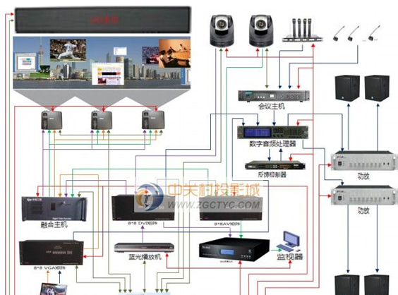 智能多媒体会议室音响系统,实现了数字会议系统与中央控制系统的无缝连接,整合了包括音响扩声系统、会议讨论系统、同声传译系统、投票表决系统、自动跟踪摄像系统、多媒体视频系统以及网络视频会议系统等多个子系统;在无线触摸屏操控下,通过中央集成控制系统将以上各子系统与整个会议环境有机的结合成为一个整体,实现了会议的智能化管理。