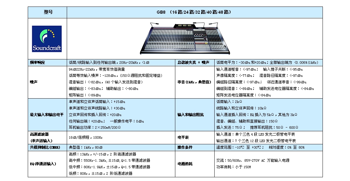 GB8 是 Soundcraft 总设计师 Graham Blyth 的名字缩写,为了庆祝 Soundcraft 30 周年,他精心设计了一套均衡器/功放,命名为 GB30,向用户提供真正的均衡效果和宁静的调音台。GB30 拥有更大的动态范围,更少的噪音,更接近人类听觉的特性。