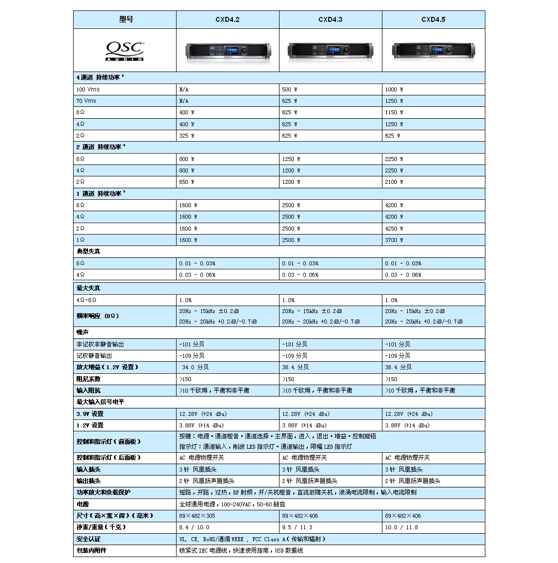 ● CXD4.5功放在70V/100V模式下,输出功率5000瓦