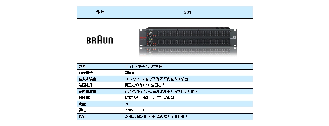231和1231和2231比较,特点是采用了SMT贴片生产技术。先进的电路设计,优质元器件的选用,让231同样具备优良的性能。2U高度机箱,相对小巧的外形,让231使用和携带更为方便。名牌大厂生产的30mm行程推子,阻尼合适,手感良好。优质可靠的大功率开关电源,确保机器能长期稳定工作于100V~240V.