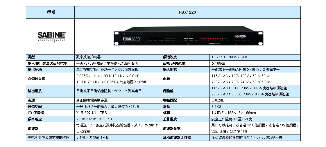赛宾 FBX1220:数字反馈抑制器