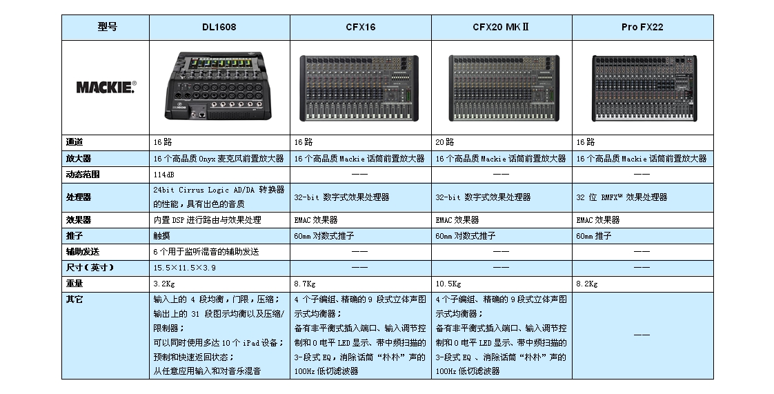 Mackie DL1608是一款整合iPad触控的新款现场成音调音台,具有16通道话放,内建效果处理