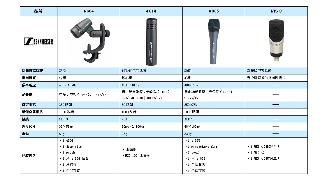声音通透,高频有升峰提升临场感,中频有穿透力,中低频结实有力,不易反馈啸叫,能有效抑制舞台串音和手握摩擦噪声,适合各种风格的人声表现,体验过e 835,其余皆平淡。无论何种演唱方式,无论距离话筒远近,声音都能保持透明和自然。坚固的结构加上中性自然的音质表现,使e 835成为排练室、家庭录音和舞台演出的首选。对于重视语言清晰度的场合,比如教室授课,汇报演讲,会议讨论等,