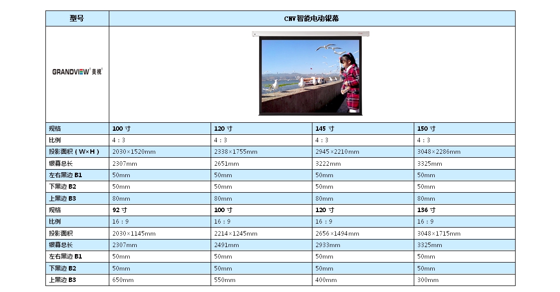 CNV系列银幕采用方形金属彩板外壳,外形简洁雅致,充分考虑到媒体教室的安装环境需求,不仅可以选择壁挂安装,天花悬吊安装,天花悬吊安装,而且还可以直接固定在墙面或天花板上。