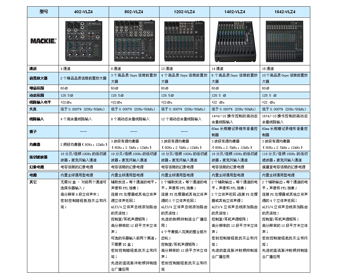 ◆12通道调音台具有美奇VLZ4的低噪声设计Mackie1402-VLZ4:14路调音台