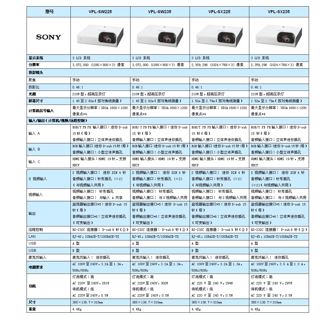VPL-SX235 :3200 流明 XGA 短焦投影机