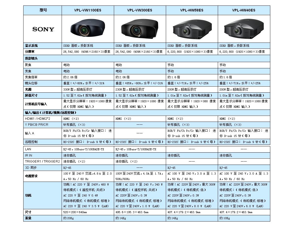 VPL-HW40ES:经济型全高清 3D 家庭影院投影机采用 SXRD 面板和真实创作等技术,具有高亮度影院和高亮度电视模式