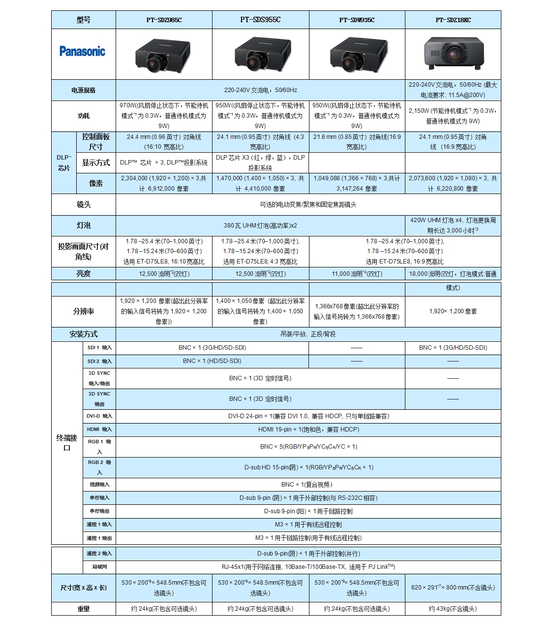 紧凑的机身实现高亮度、全高清WUXGA分辨率、动态光圈实现10,000:1*5的高对比度、图像细节清晰处理器3更好的立体感和图像解晰度、强光色彩补正功能2加强了色彩感知度;