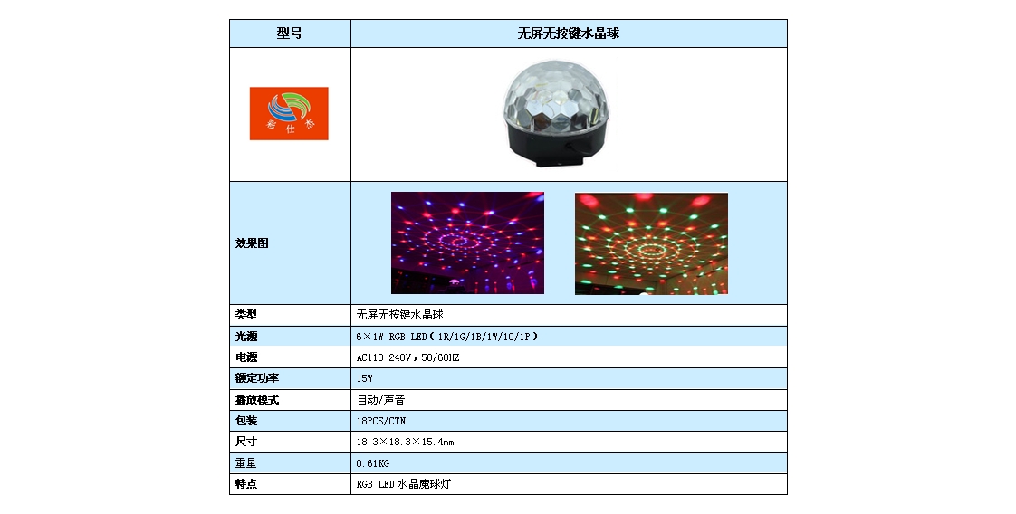 特点:RGB LED水晶魔球灯。