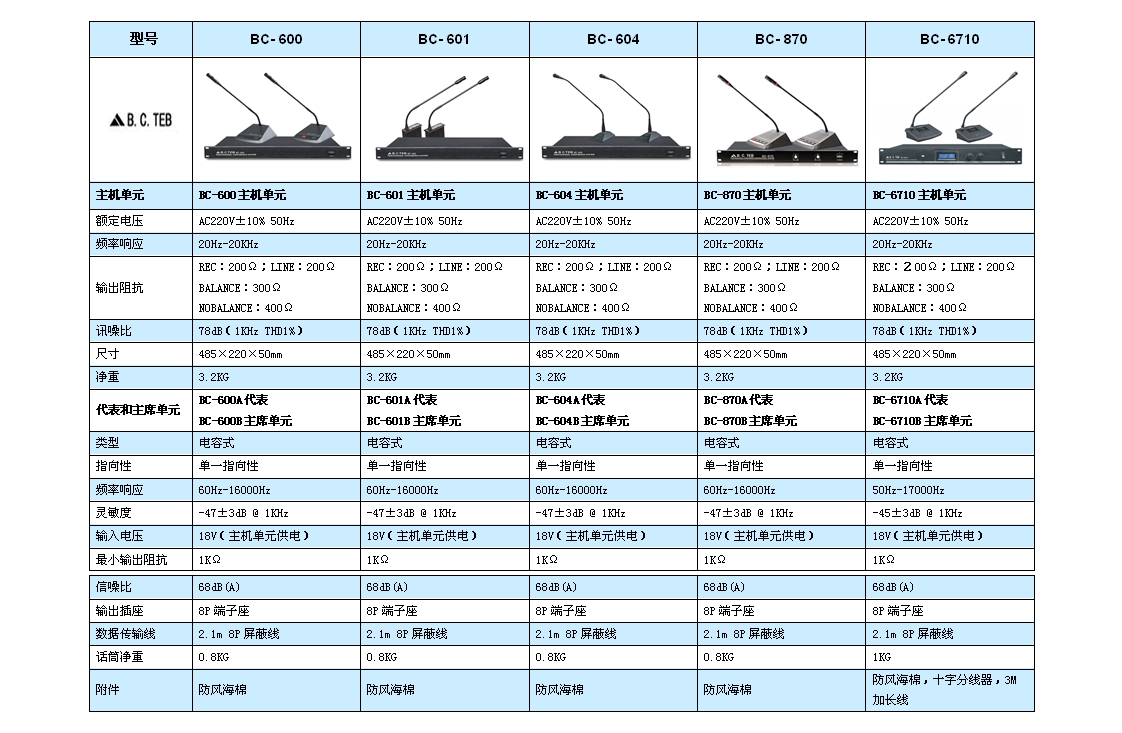 每一个系统主机可以连接60个话筒单元,分两路串联输出设有同时工作话筒数量限制开关,可选择“3”或“6”配有音频平行输出和6.3插孔输出接口。