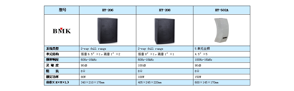 HY-208音箱是专为会议室、教室、多媒体教室、卡拉OK环绕、辅助补声而精心设计的,在高密度板箱体内,由一个8寸的低频驱动器以及一个25芯号角高音组成。其最大的特点就是高、中频的清晰细腻、音色亮丽,表现出色。箱体内置M8多点吊挂装置,安装方便快捷。