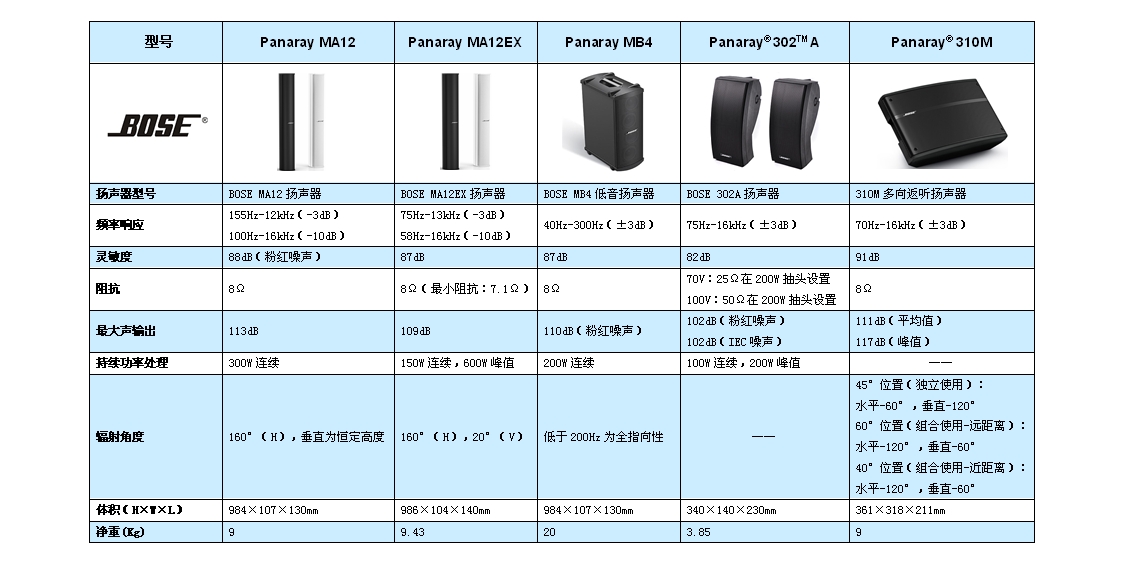 Bose® PANARAY® 502A扬声器系统使用有源均衡技术,实现全频段的频率响应准确而平衡,音乐和语言的再现同样出色。