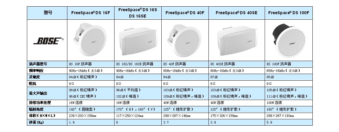 Bose® 自由空间® DS 16S及DS 16SE扬声器是两款高性能的墙面安装扬声器,专为广泛的商业应用而设,适合用于零售店、餐馆、医院等场合的背景音乐播放及语言扩声。