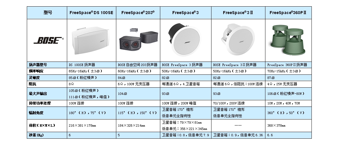 Bose® FreeSpace ® 3Ⅱ扬声器为高表现力、隐蔽安装的扬声器系统,设计应用于各种范围的商业应用场合,例如:零售商店、餐馆、酒店。